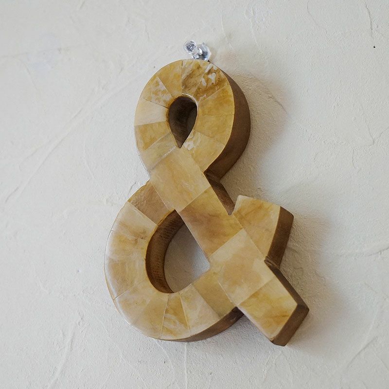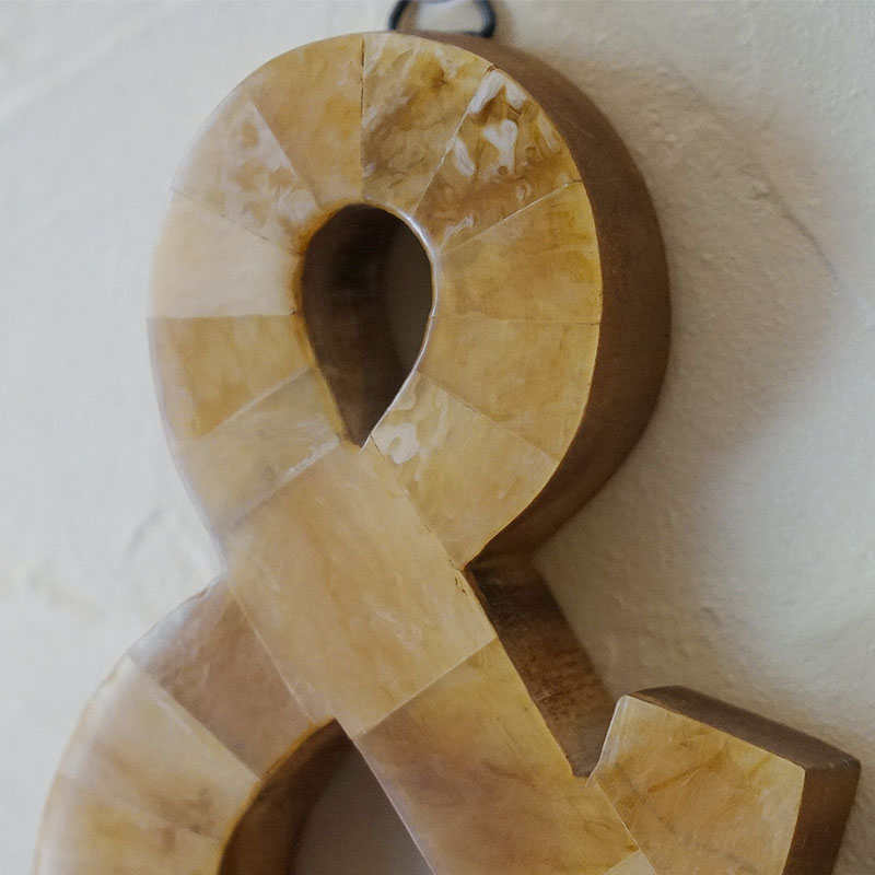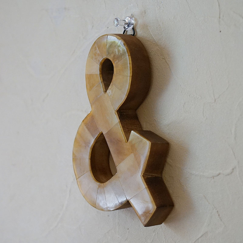 【コメント】水牛の骨(ボーン)を使用した壁飾りの&マークです。フォトフレームの周りに、アクセントに飾るのもいいですね。ボーンの自然な模様もオシャレです。