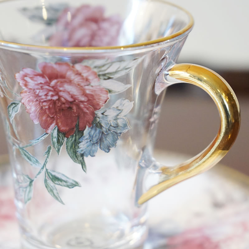 【コメント】英国クラシックスタイルのカップ&ソーサーです。クリアのガラスを使用していますので、ティーやハーブの美しい色が楽しめますね。みなさんでワイワイ楽しめるカップ&ソーサーです。数量に限りがあります。テーブルの上が楽しくなります。
