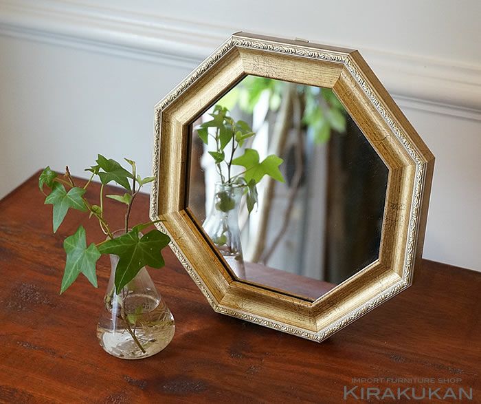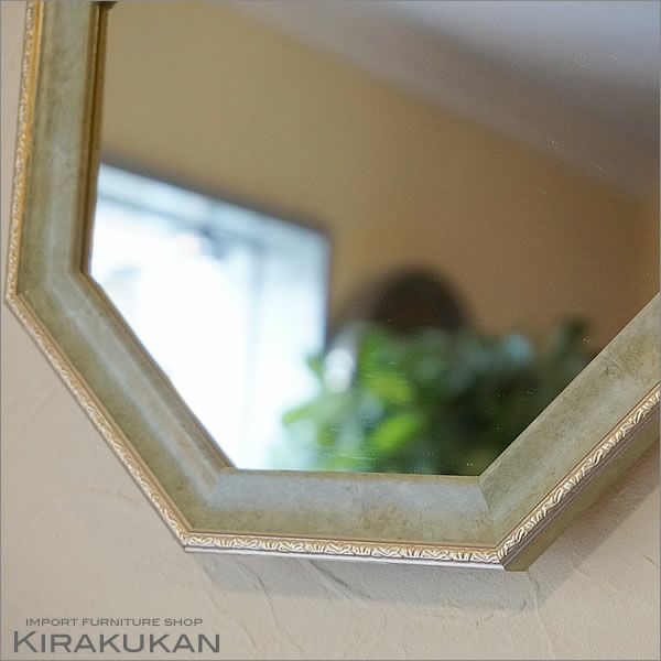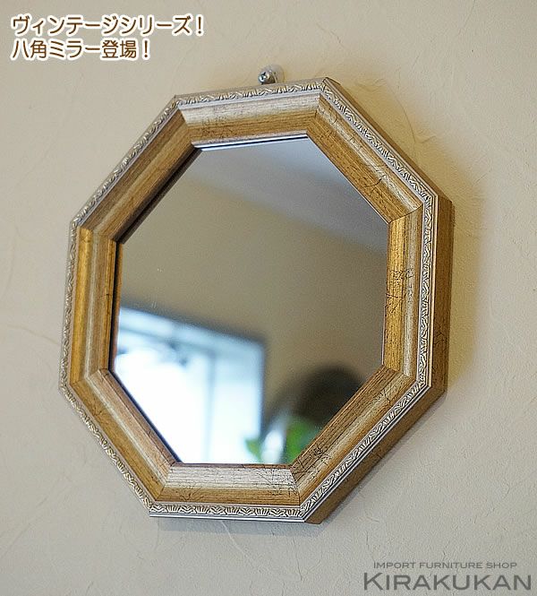 輸入雑貨|ミラー・鏡 シリーズ 「ベストセラー」 イタリア製 八角ミラー 壁掛け アンティーク風 開運 八角形 鏡