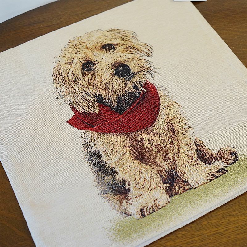 生活雑貨で暮らしを豊かに楽しく!| クッションカバー 45×45cm おしゃれ 犬 ドッグ ノーフォーク テリア ゴブラン織り ポルトガル製 クッション