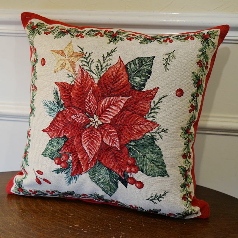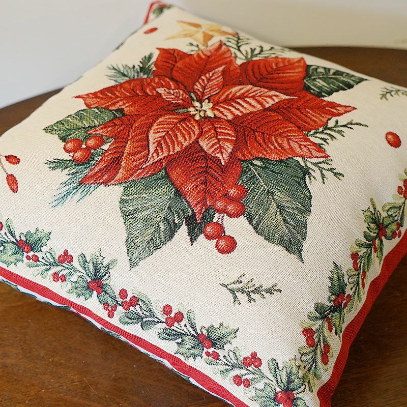 生活雑貨で暮らしを豊かに楽しく!| クッションカバー 45×45cm おしゃれ ポインセチア ゴブラン織り ポルトガル製 クリスマス クッション