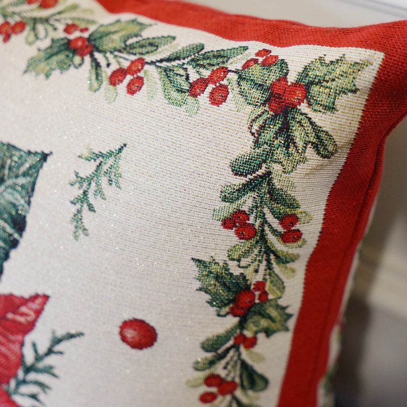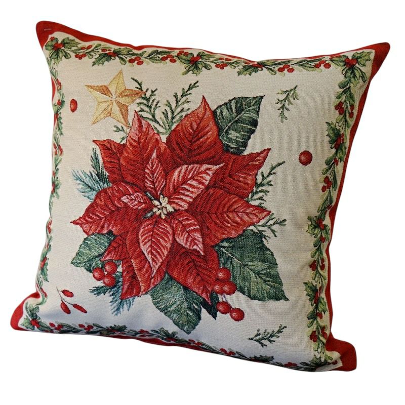 5. クッションカバー 45×45cm おしゃれ ポインセチア ゴブラン織り ポルトガル製 クリスマス クッション