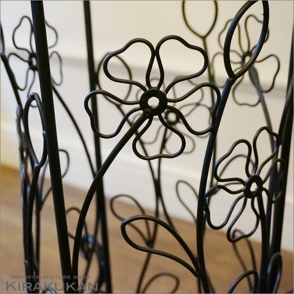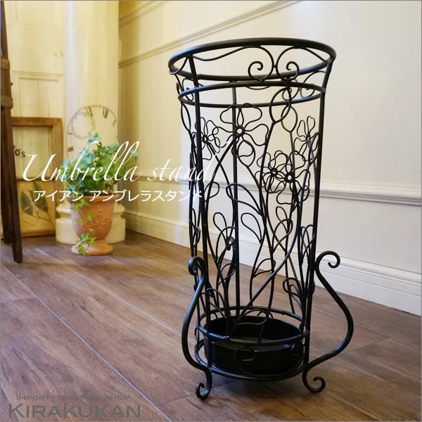 アイアン 傘立て (丸型・ブラック) 花柄 おしゃれ傘立て・アンブレラスタンド