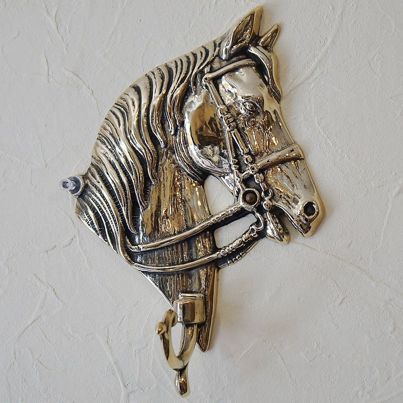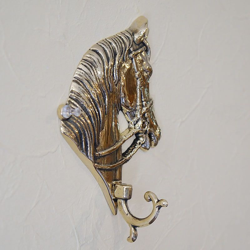 4. イタリア製 真鍮 ブラス製 キーフック1連 ホース 馬 壁掛け フック
