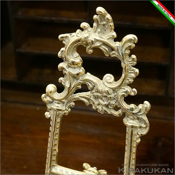 【コメント】真鍮の無垢を贅沢に使用した「イーゼル」です。上部と下部には彫刻が施されていて、クラシック感が出ていて上品なスタイルになっています。インテリア置物としてもオシャレなのでプレゼントにも最高です。