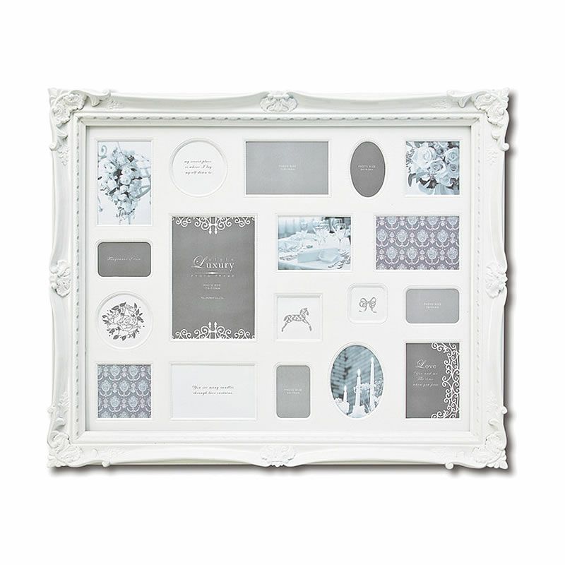 フォトフレームは家族の宝物| アンティークスタイル フォトフレーム18窓(ホワイト色)壁掛け用【縦横両用】写真立て 壁掛け