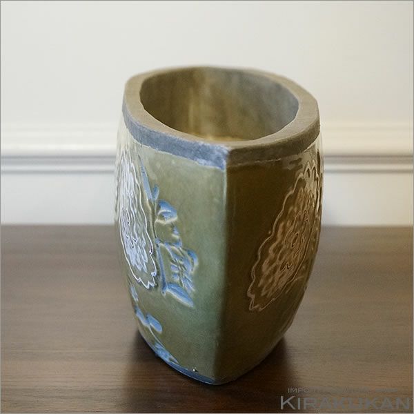 4. フラワーベース・花瓶(グリーン)陶器製 モダン 雑貨 輸入雑貨