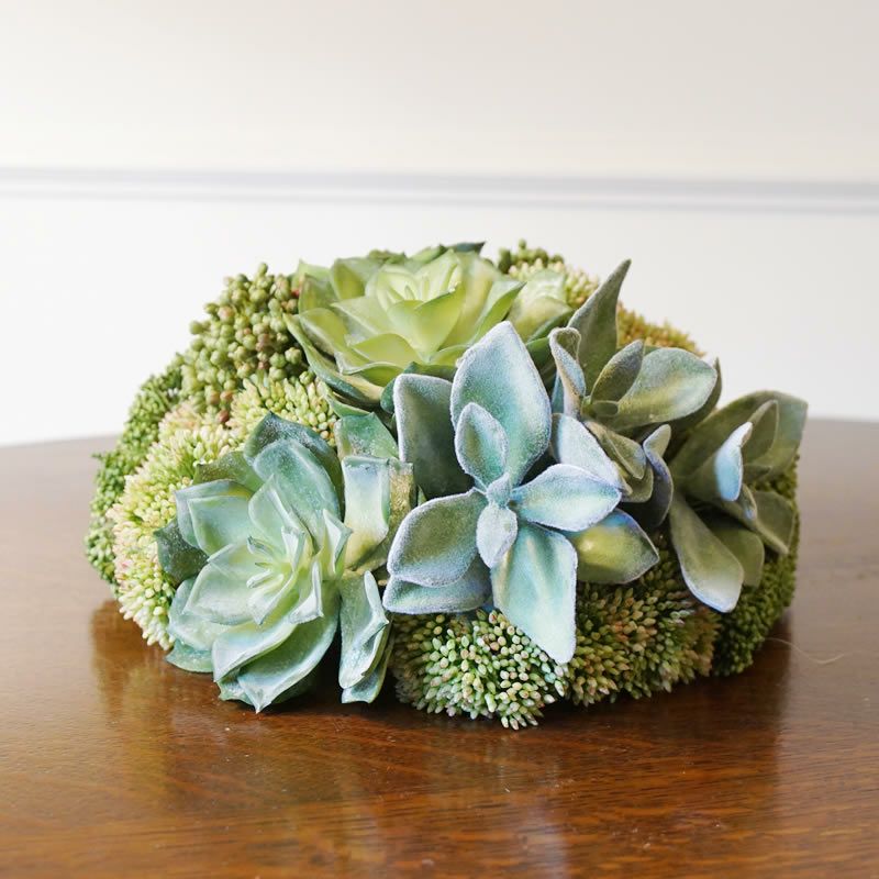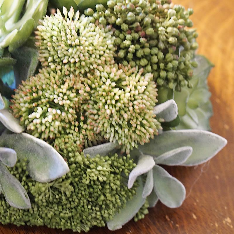 【コメント】多肉植物モデル 盛り付けの置物です。ディスプレーのように花瓶に置いて飾ってもおしゃれ。お部屋の空間のアイポイントになりますね。見てるだけでも癒やされるスワッグです。プレゼントにも喜ばれると思います。