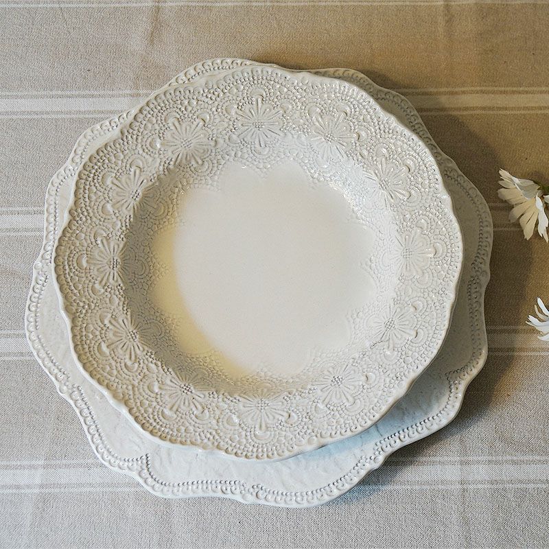 生活雑貨で暮らしを豊かに楽しく!| ラ・セラミカ クリームレースプレート30cm お皿 イタリア製【送料無料】陶器製 皿 プレート
