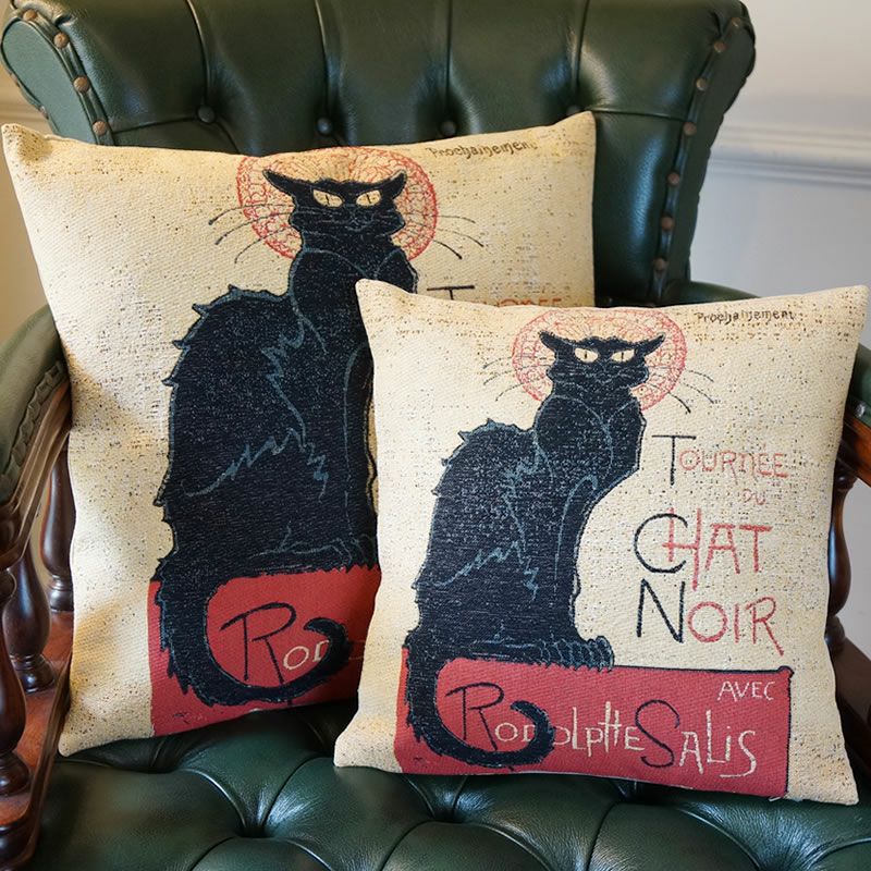【コメント】フランスのポスターで人気のシャノワール 黒猫をクッションにしました。 リビングのソファの上にシャノワール 黒猫を飾る。リビングがギャラリーになり、オシャレ感がプラスされますね。ヨーロッパ伝統のゴブラン織を、繊細な美意識を持つ日本人の感性に合う商品をご紹介しております。
