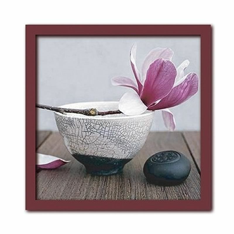 【コメント】マグノリア(モクレン)の花を使用した静物アートパネルです。和のテイストも感じられる陶器の器に、ピンクの木蓮の花が優しく・美しく、見ているものを癒やしてくれるバネルになっています。壁掛けパネルで、白い壁によく映えますね。新築祝い・リフォーム祝・母の日のプレゼント・ギフトに喜ばれております。