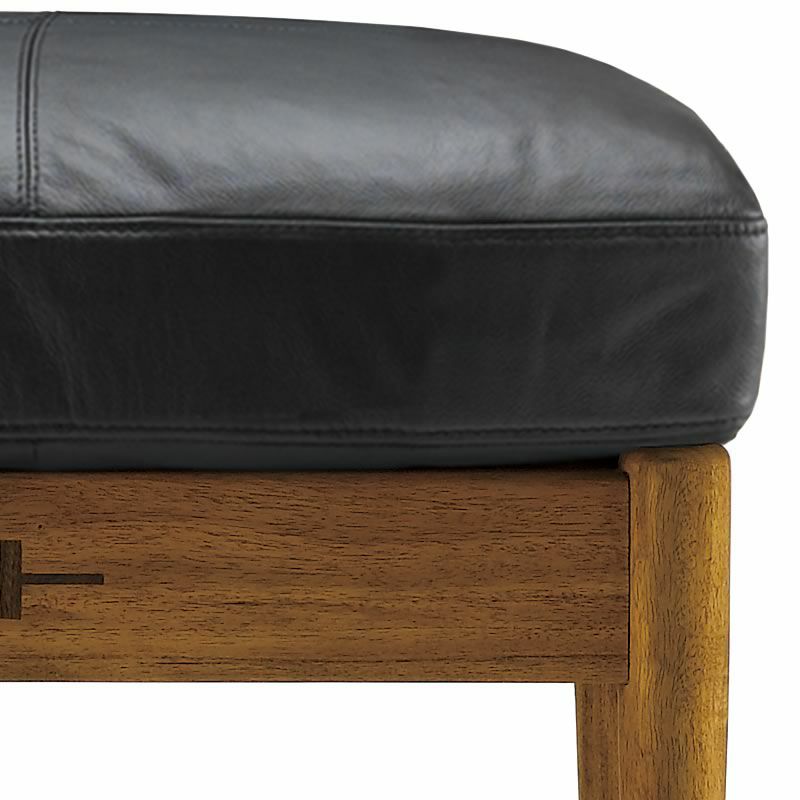 6. 北欧スタイル家具 EDDA エッダ レザー オットマン ブラック本牛革張り