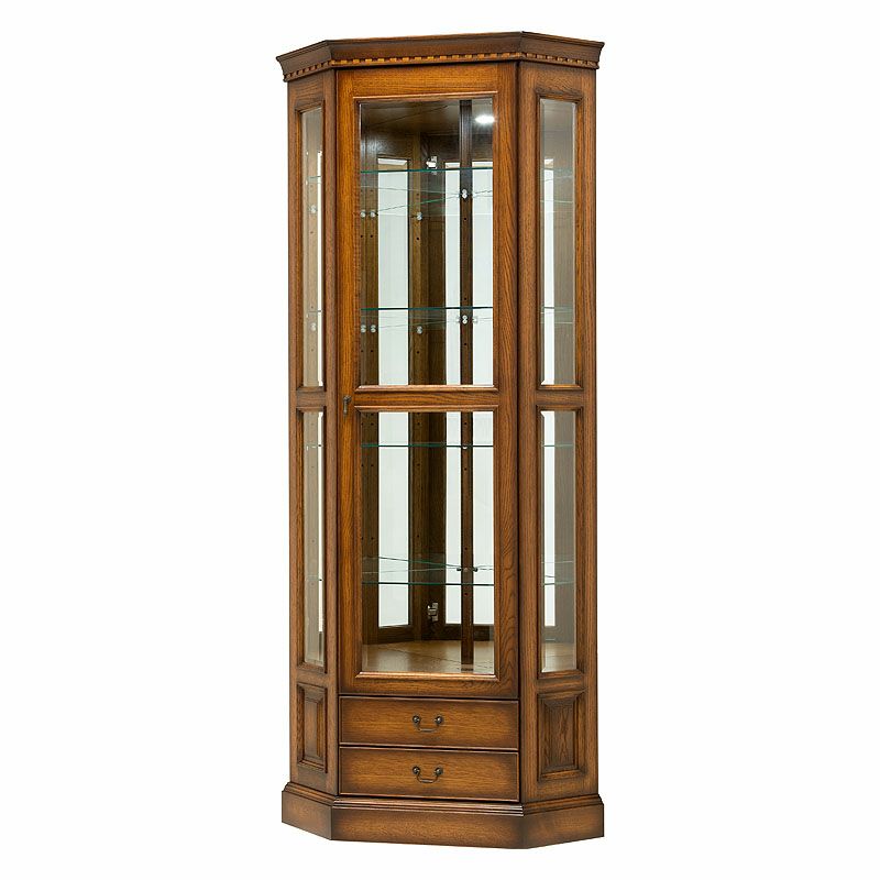 ナラ材独特の木目、虎斑(とらふ)を使用したアンティーク調家具| ブルックス BROOKS コーナーキュリオケースH【送料無料】北海道家具
