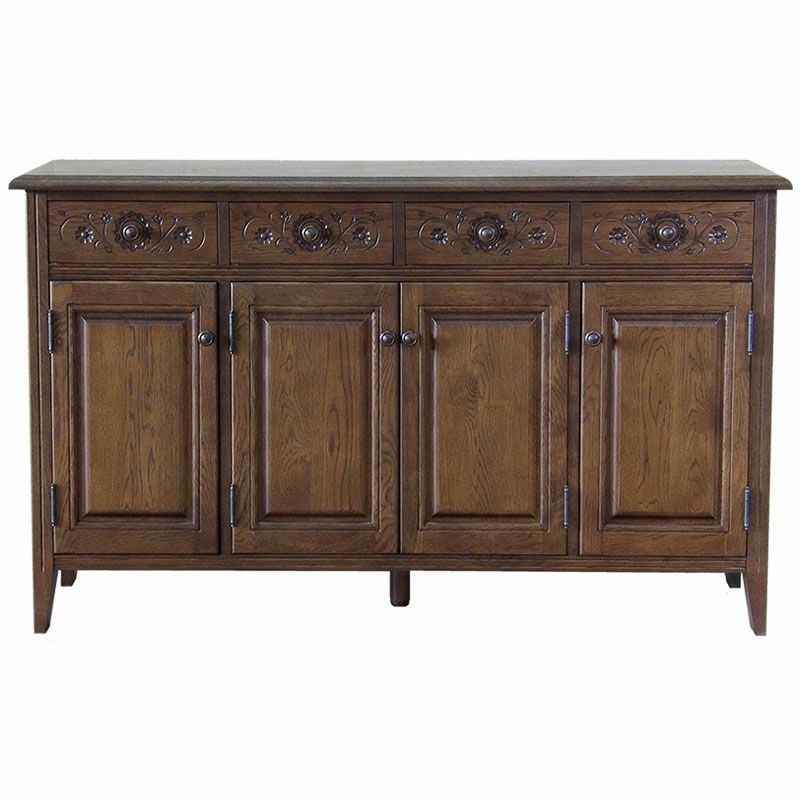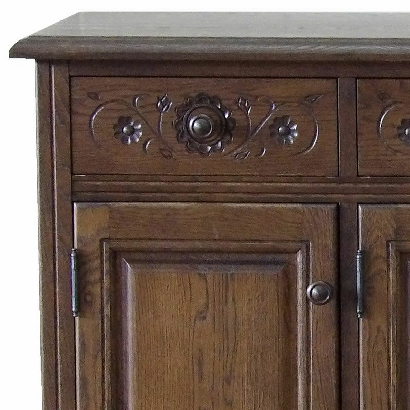 花柄の彫刻がポイントの北海道手作り家具| フェバリー キャビネット140 サイドボード 北海道家具 旭川 インテリアえぞ 民芸 おしゃれ 木製 食器棚 本棚