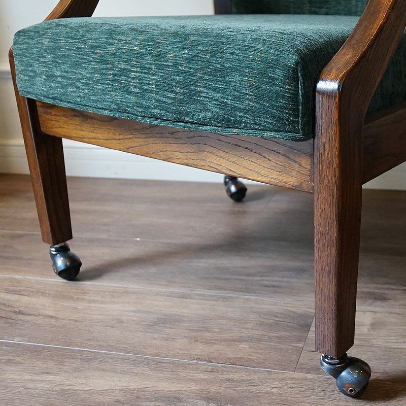 アーム付きで、キャスターも付いていますので、下がったり、回ったりが簡単にできる便利な英国スタイルのアームチェアです。