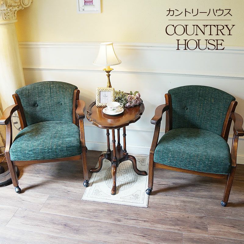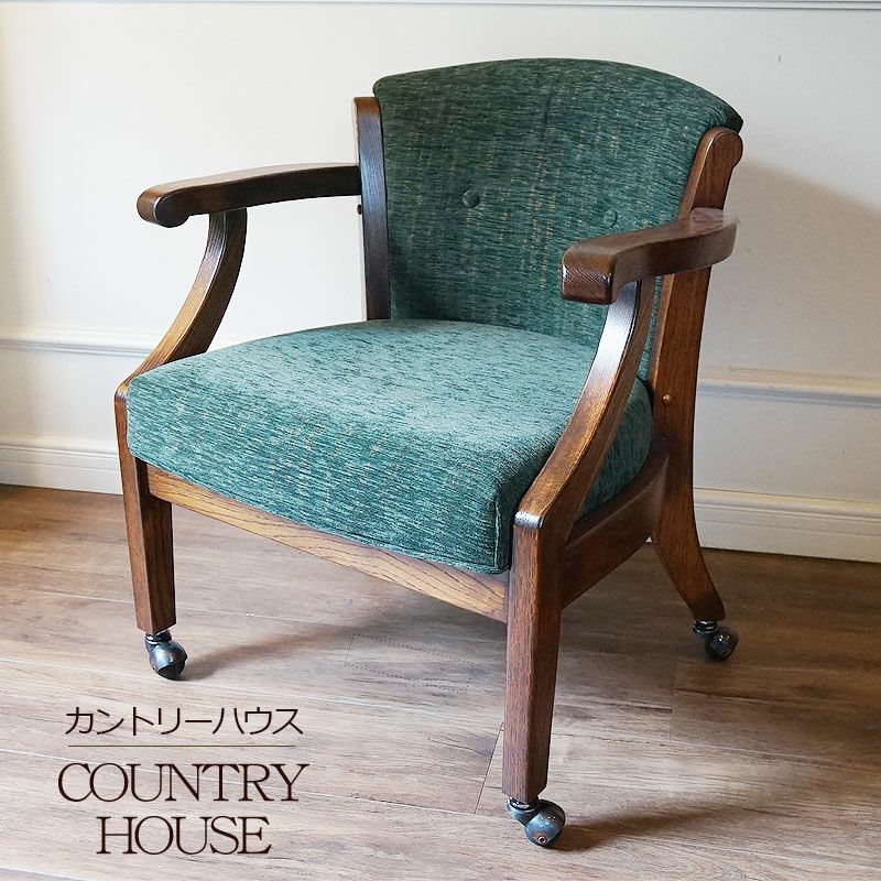 COUNTRY HOUSE 日本の職人が手作りにこだわった英国スタイル家具| 【在庫2台限り】カントリーハウス キャスター付アームチェア(生地:GM色)