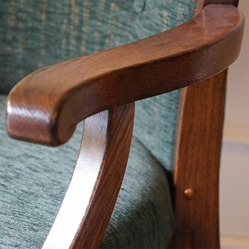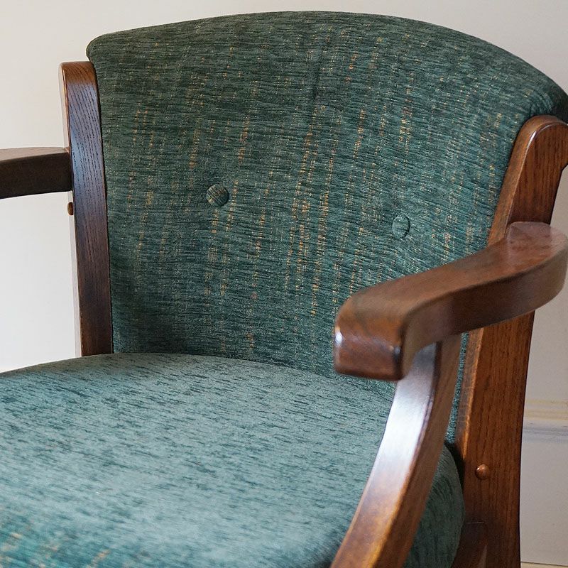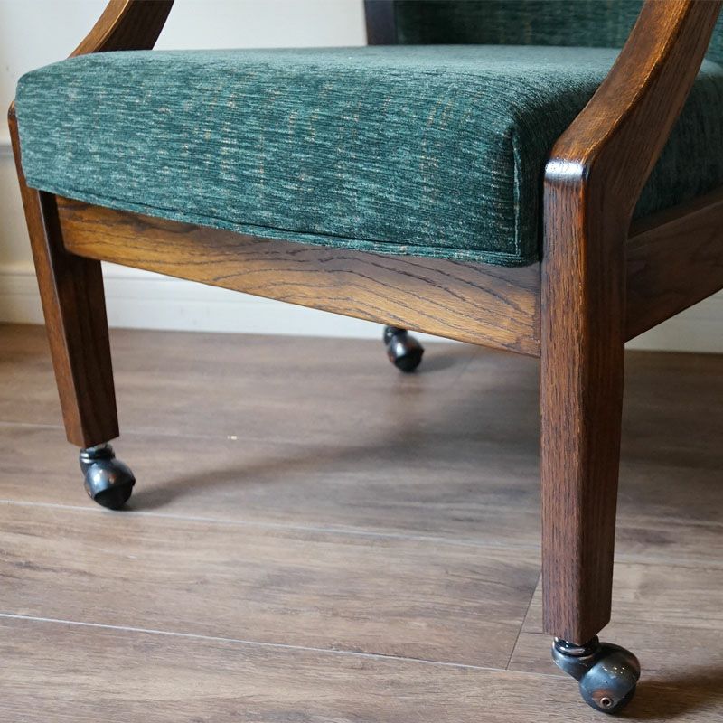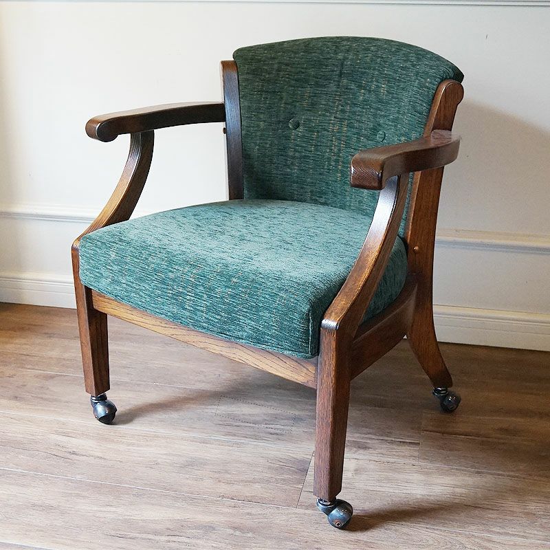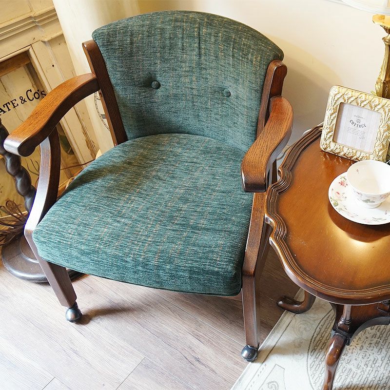 アーム付きで、キャスターも付いていますので、下がったり、回ったりが簡単にできる便利な英国スタイルのアームチェアです。
