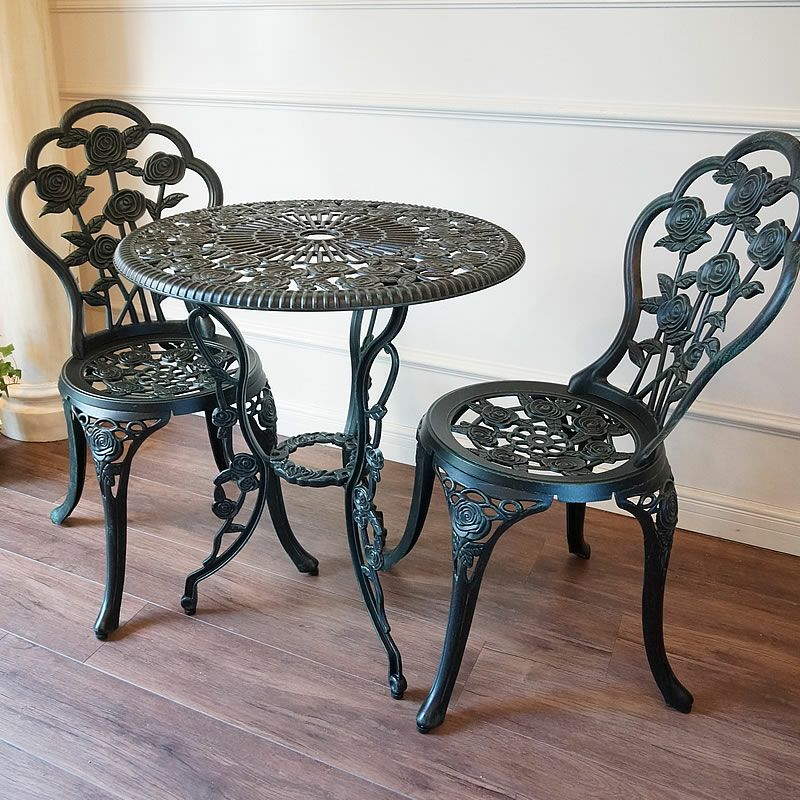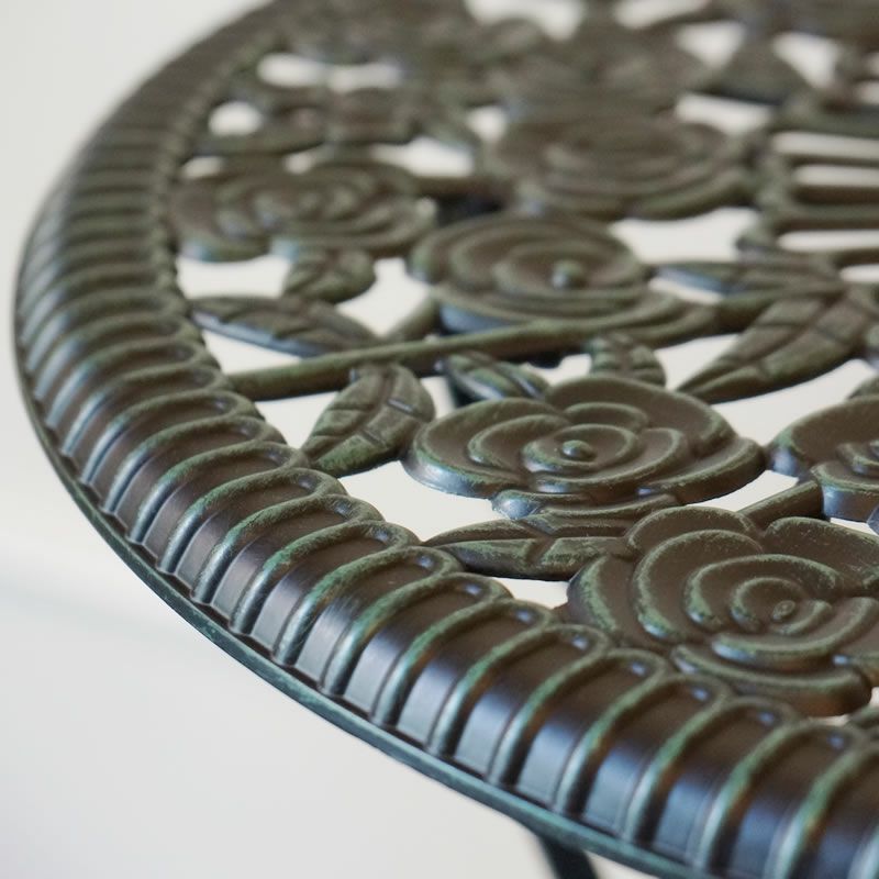 ガーデニングで暮らしを豊かに楽しく!| ガーデンファニチャー アルミ鋳物テーブル3点セット(中)組立