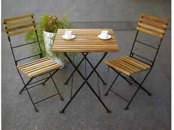 ガーデンファニチャー【折り畳みアイアンチークテーブル3点セット】