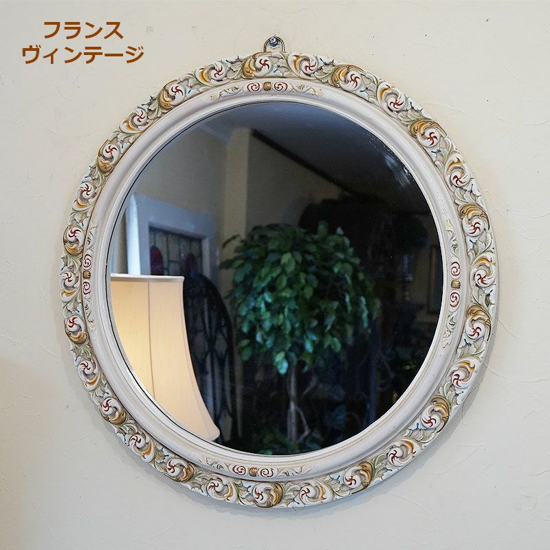 ヴィンテージ雑貨で暮らしを豊かに楽しく!| 鏡 壁掛け アンティーク ビンテージ USED フランス製 ローズ ウォールミラー 壁掛け鏡 丸型