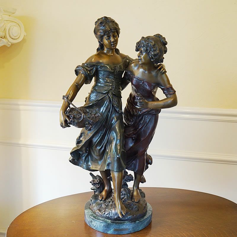 ヴィンテージで暮らしを豊かに楽しく!| アンティーク ブロンズ像 置物 Auguste Moreau オーギュスト モロー作「ふたりの少女 花摘み」オブジェ 大理石