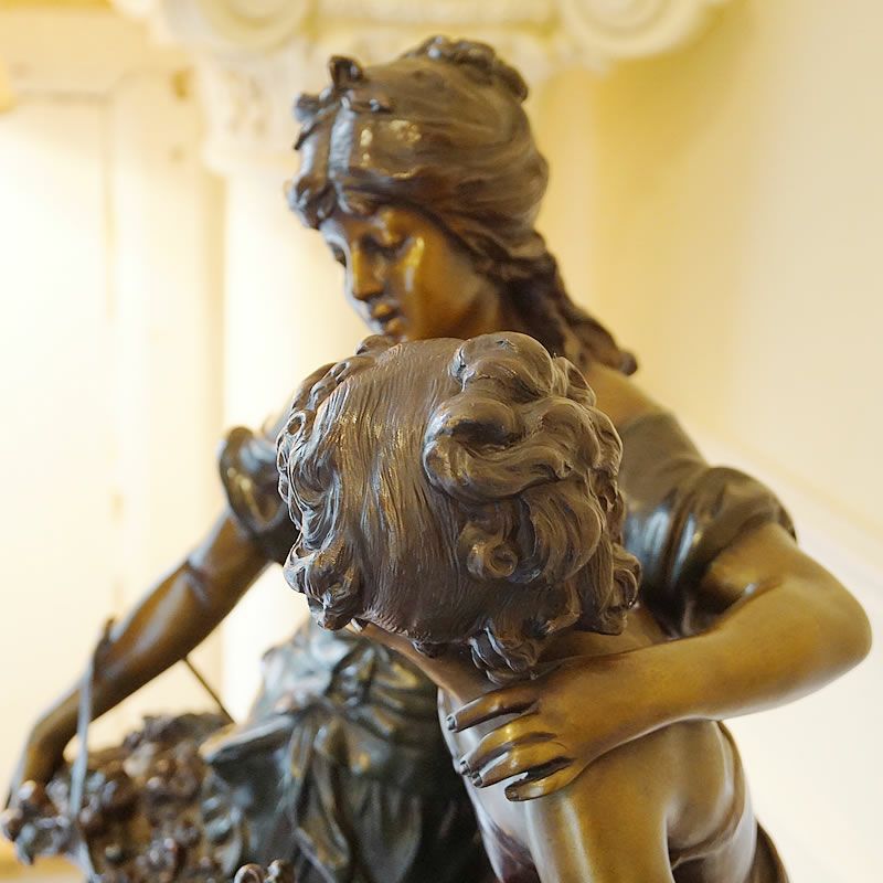 【コメント】フランスのブロンズ像 Auguste Moreau オーギュスト モロー作「ふたりの少女 花摘み」です。下面には、Auguste Moreauとサインが書かれています。オーギュスト・モロー(1834年〜1917年)マルゼルブ、フランスの彫刻家。彫刻家の父の三男です。この作品は、ふたりの少女が、仲良く、楽しそうに花摘みする様を表現したブロンズ像です。