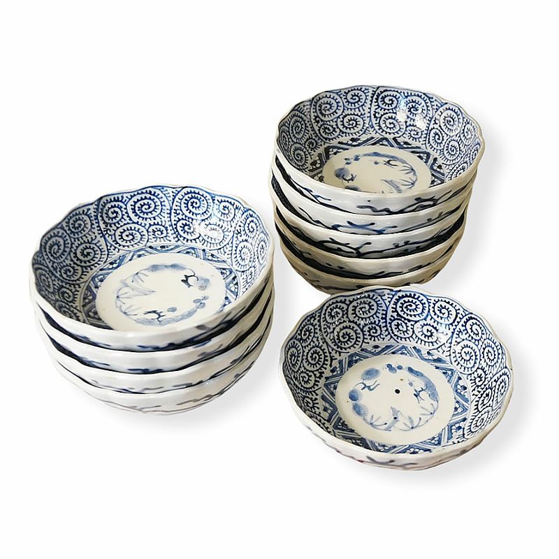 4. ヴィンテージ 古伊万里 15cm 丸皿 蛸唐草文 10枚セット【送料無料】和風 伊万里焼