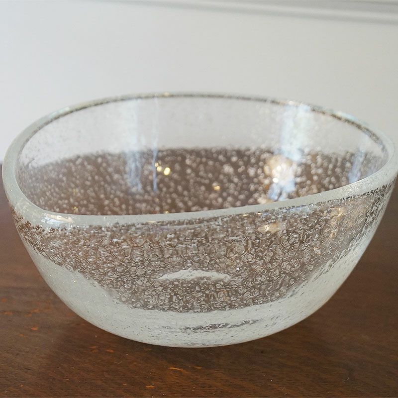 5. ヴィンテージ・ガラス鉢 器 片口風 作家物 浅井慎平作 銀散らし仕上げ サインあり箱付【送料無料】食器 フルーツ皿 テーブルウェア