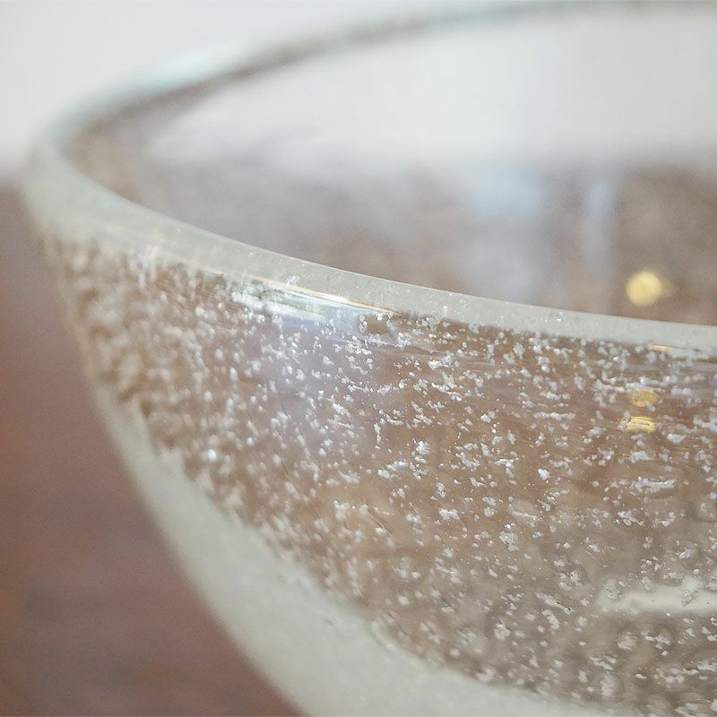 3. ヴィンテージ・ガラス鉢 器 片口風 作家物 浅井慎平作 銀散らし仕上げ サインあり箱付【送料無料】食器 フルーツ皿 テーブルウェア