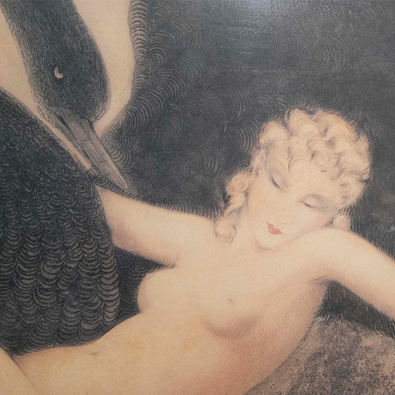ヴィンテージで暮らしを豊かに楽しく!| ルイ イカール画 「 レダとスワン 」「Leda and the Swan」 オフセット 限定版 サインあり ビンテージ 絵画