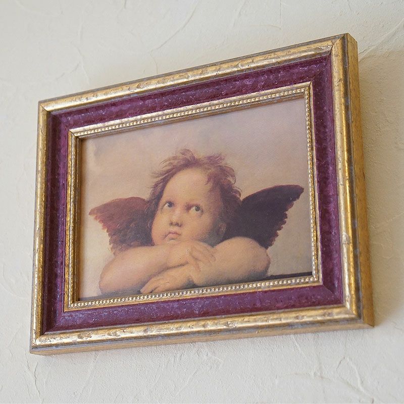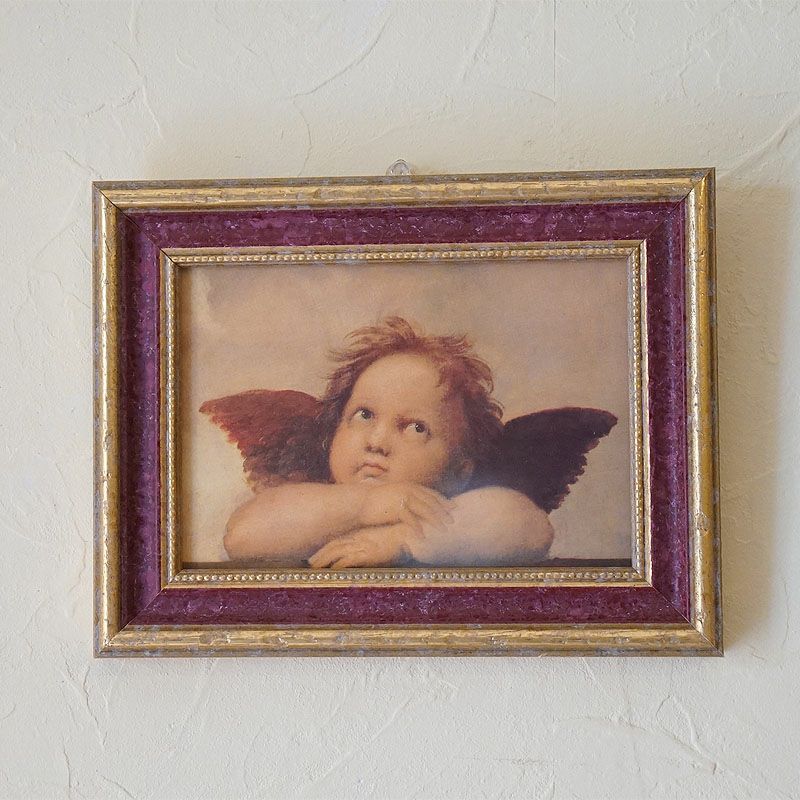 輸入雑貨で暮らしを豊かに楽しく!| 絵画 インテリア 額入り イタリア製 天使の額絵 木製額 ラファエロ作