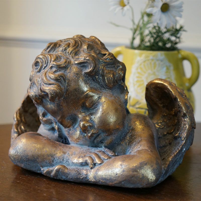 天使雑貨で暮らしを豊かに楽しく!| 数量限定:天使雑貨 天使 置物 エンジェル 置物 スリーピング アンティークゴールド仕上げ 輸入雑貨 インテリア 雑貨