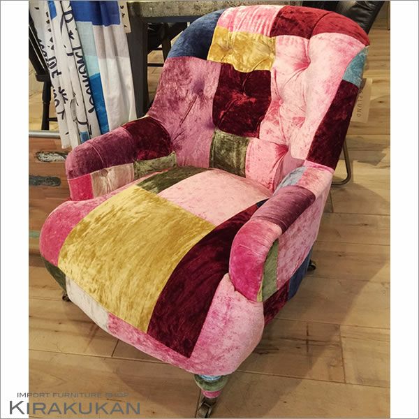 輸入家具・英国アンティーク家具調|HALO ハロ シリーズ 【受注生産】英国 アンティーク HALO ハロ【アンチェア(ベルベットパッチワークボヘム)】[売れ筋]