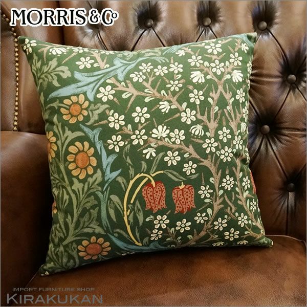 【コメント】本場イギリスの生地を空輸で取り寄せて、国内で縫製した45センチ角のクッションカバーです。ウィリアムモリスは日本で人気のデザイナーで、クラシックインテリア・ヨーロピアンインテリアには欠かすことのできないアイテムになっています。