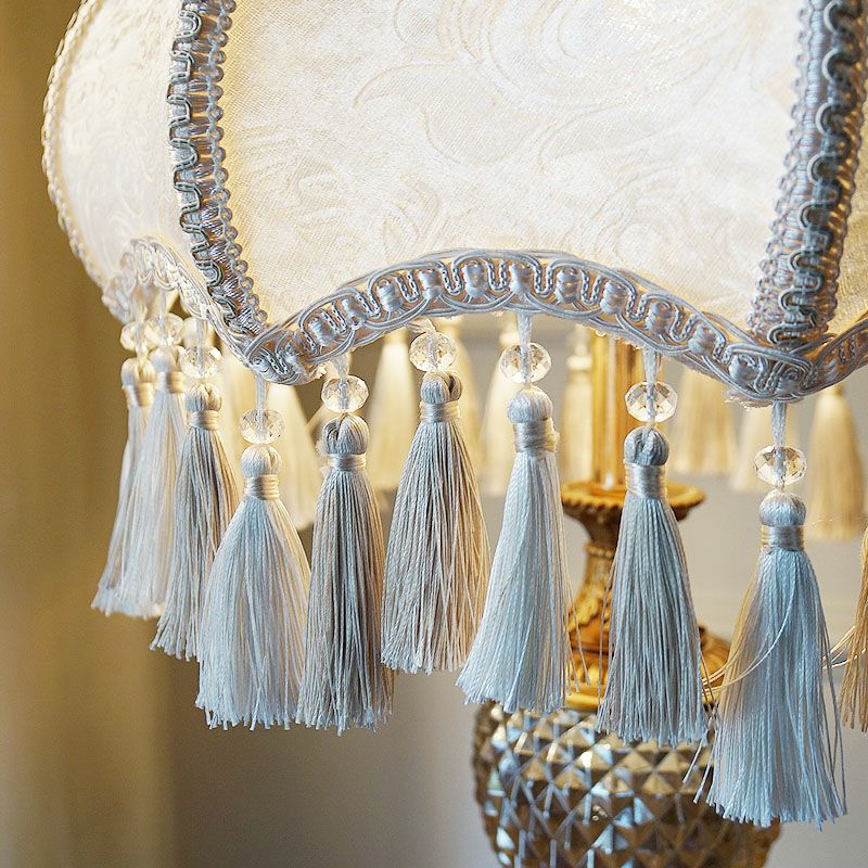 【コメント】アンティーク調の可愛いシェードにタッセルが付いたテーブルランプです。シェードのファブリックの模様も素敵でインテリアをクラシック&エレガントに演出します。ソファのサイドやベッドサイドにいかがですか?