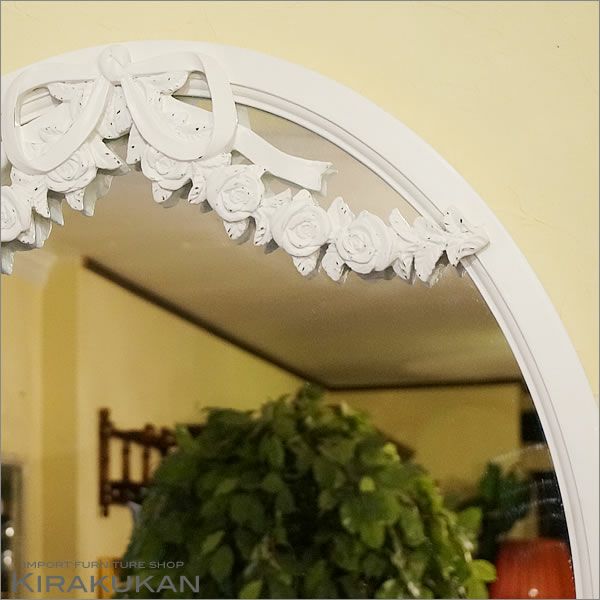 4. カントリーコーナー Country Corner ROSE ローズコレクション オーバルミラー 鏡 壁掛け ミラー 白家具
