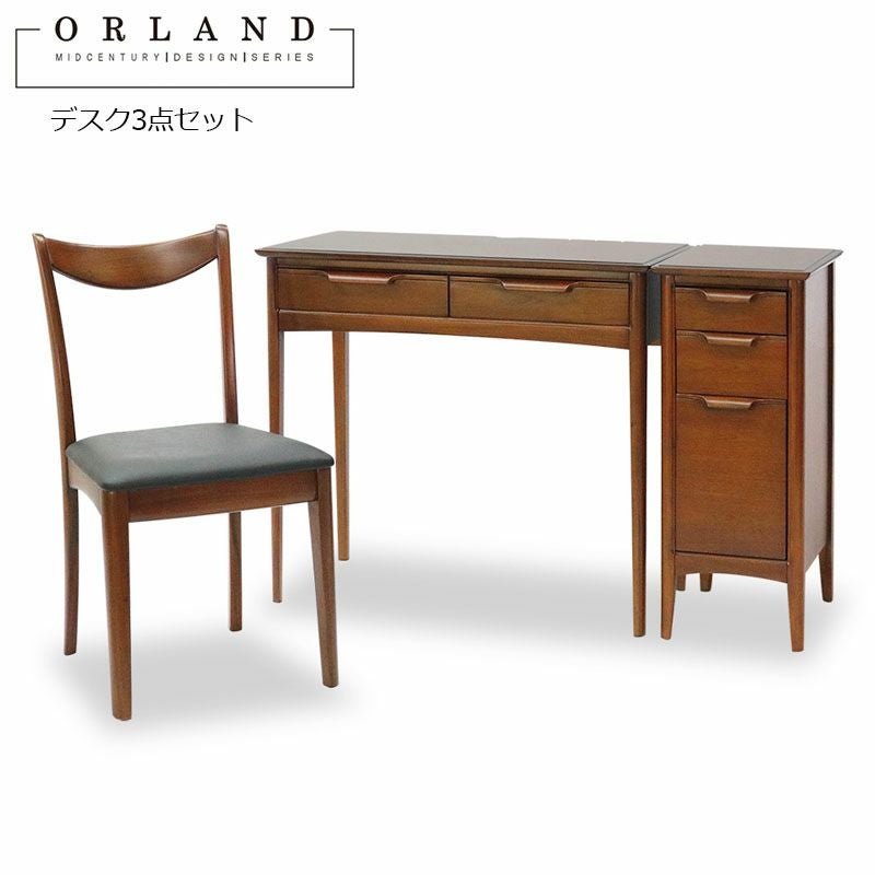 ミッドセンチュリースタイル家具| オーランド デスク3点セット デスク 引き出し デスク 木製 平机 おしゃれ マホガニー 開梱設置込み