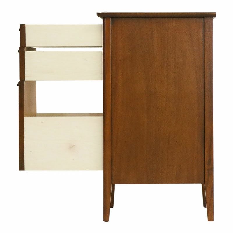 【コメント】「オーランドシリーズ」はクラフト的な味わいを大切にしたヨーロピアンミッドセンチュリースタイルシリーズ です。マホガニー材にヴィンテージ感のあるミディアムブラウンのセミマッド塗装を施し、北欧テイストを感じさせ、ブルックリンスタイルにも合わせやすいデザインにしています。 温もりを感じるシンプルなボディーに、マホガニー無垢材を削り出した手触りの良い取っ手と、すっきりと伸びたテーバードレッグが特徴です。
