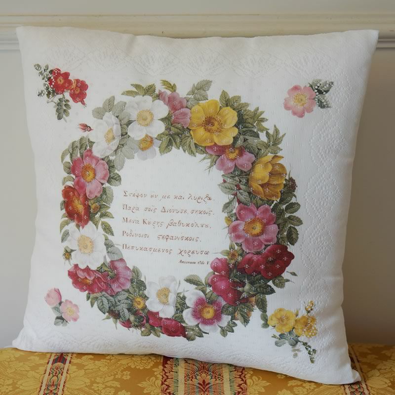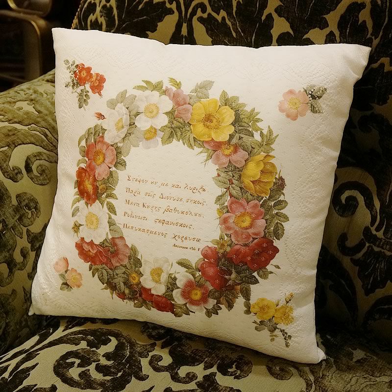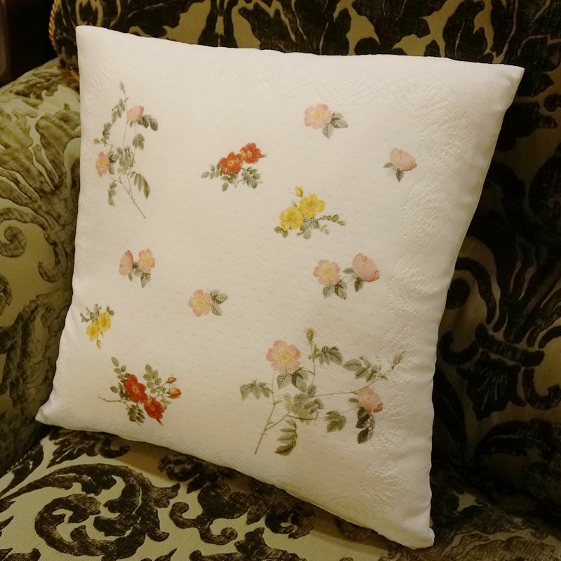 【コメント】ルドゥーテのバラ図譜をプリントしたレースクッションカバーです。パンヤは含まれませんので、ご注意ください。クッションカバーのデザインは3種類ございます。バラ柄・リース柄・パンジー柄がございます。ソファが華やかで楽しい雰囲気に変わります。