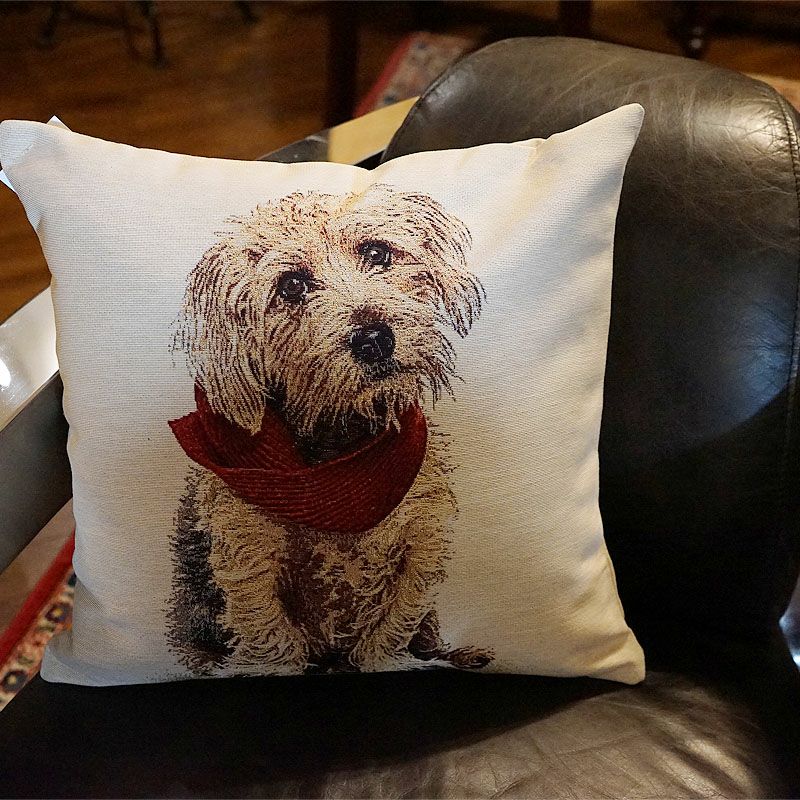 生活雑貨で暮らしを豊かに楽しく!| クッションカバー 45×45cm おしゃれ 犬 ドッグ ノーフォーク テリア ゴブラン織り ポルトガル製 クッション