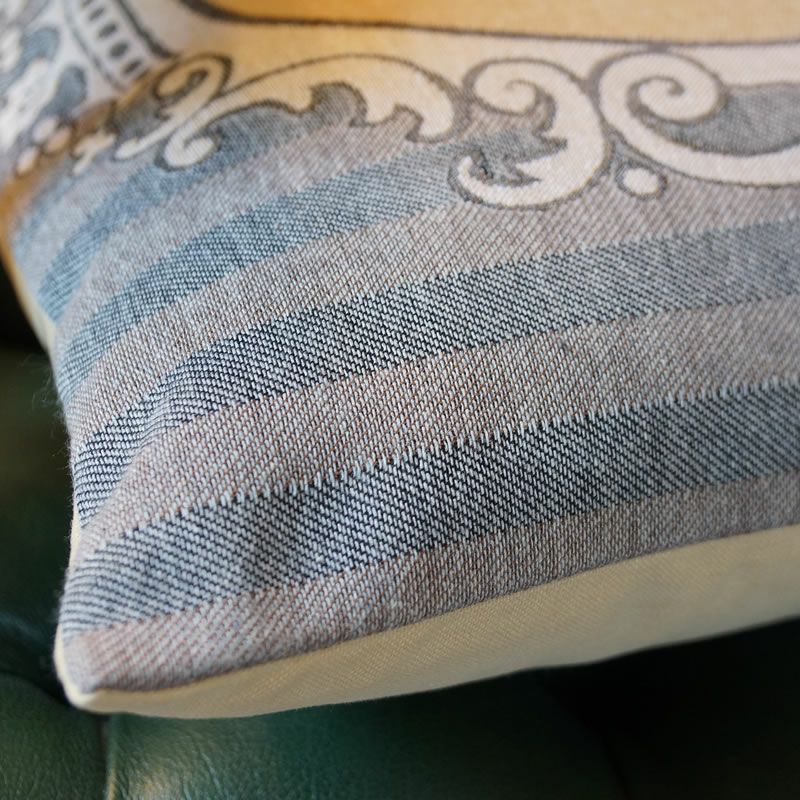 ブルーとグレーのストライプがアクセントでオシャレです。 リビングがギャラリーになり、オシャレ感がプラスされますね。ヨーロッパ伝統のゴブラン織を、繊細な美意識を持つ日本人の感性に合う商品をご紹介しております。