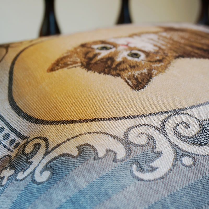 4. 輸入クッション キャット 猫 ストライプ 48x48(ベルギー製)パンヤ付 METRAX-C メトラックス