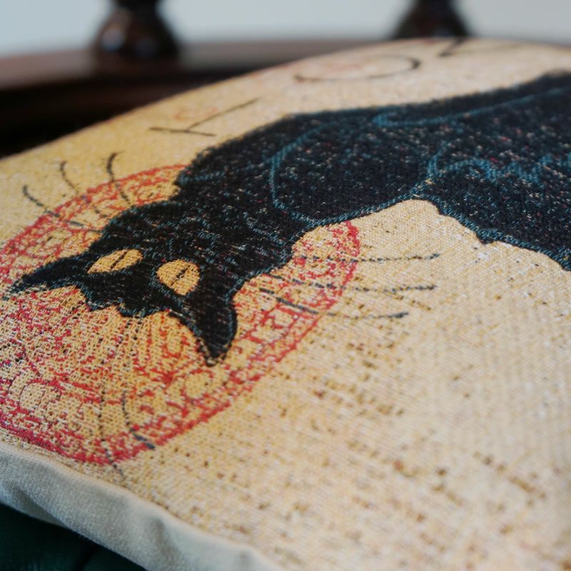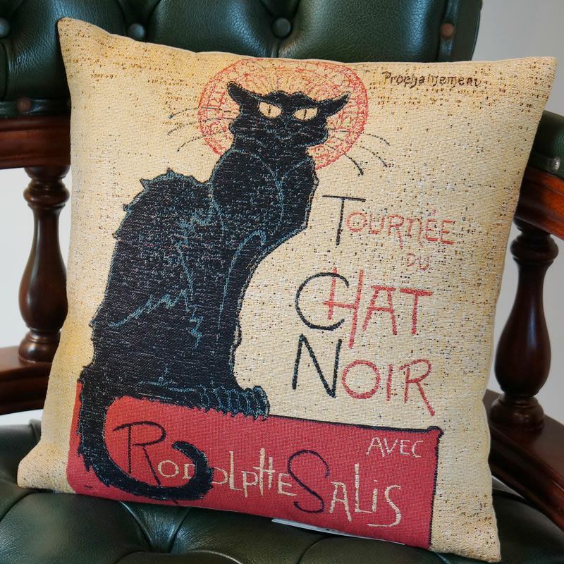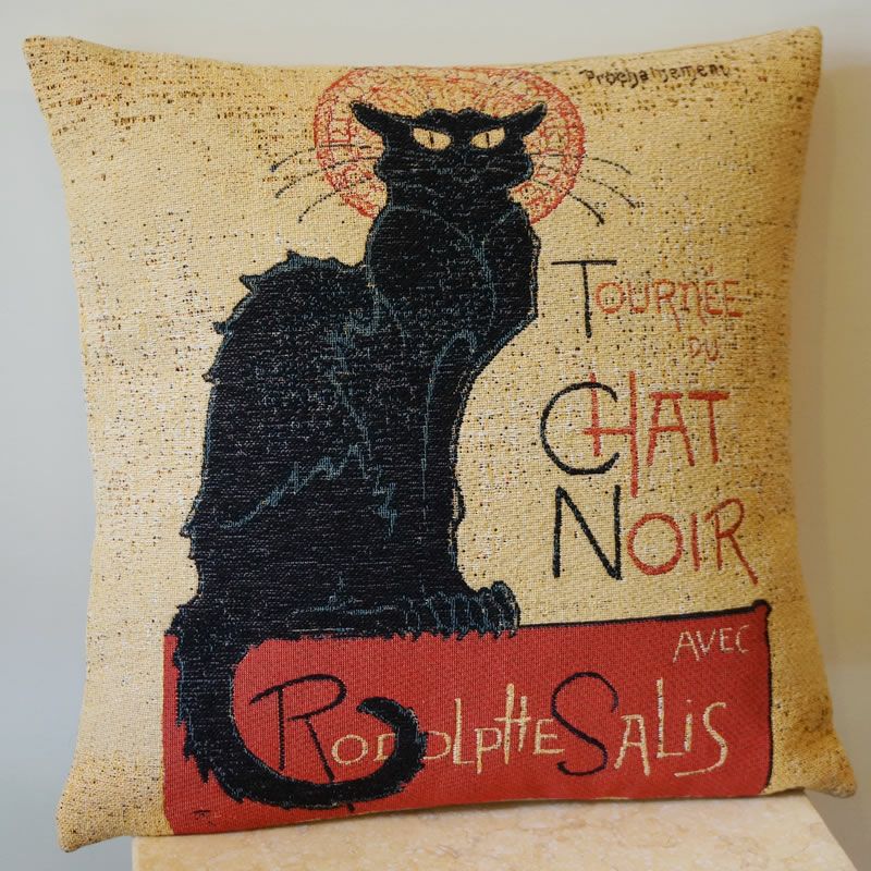 【コメント】フランスのポスターで人気のシャノワール 黒猫をクッションにしました。 リビングのソファの上にシャノワール 黒猫を飾る。リビングがギャラリーになり、オシャレ感がプラスされますね。ヨーロッパ伝統のゴブラン織を、繊細な美意識を持つ日本人の感性に合う商品をご紹介しております。