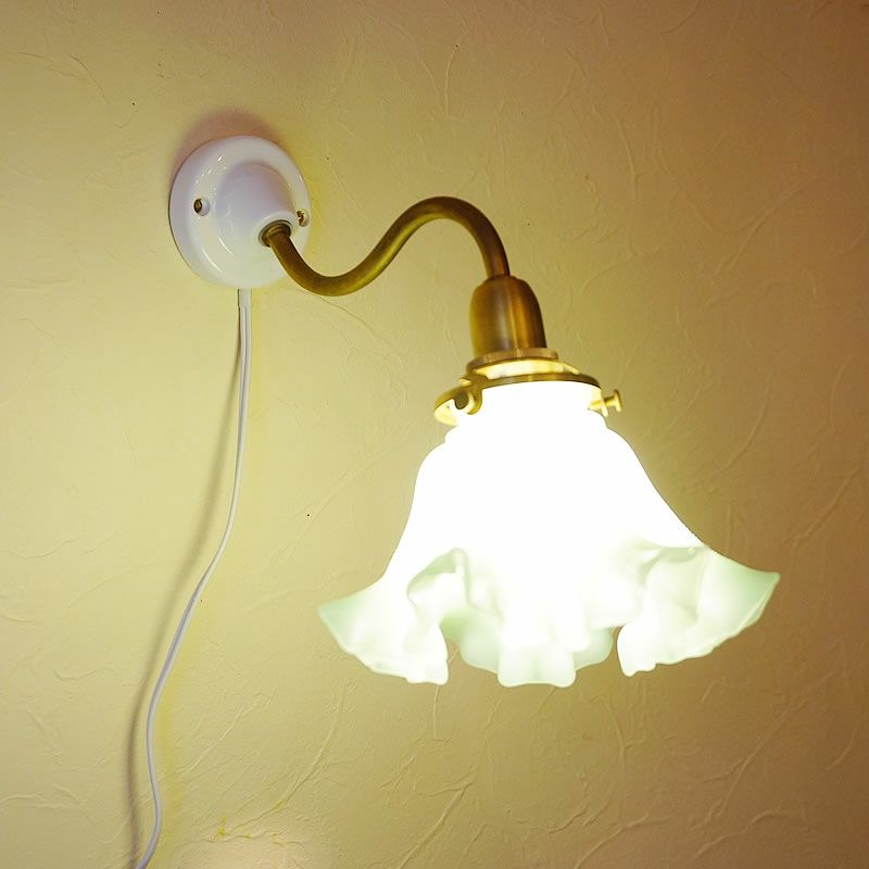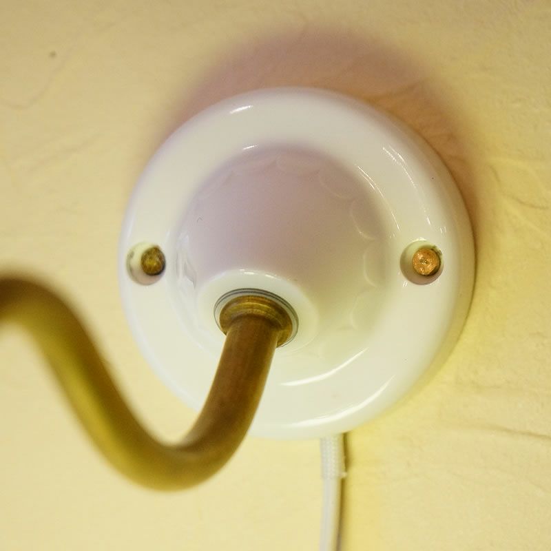 【コメント】磁器製の白いベースを思い起こさせる大正ロマン風のブラケットランプ。S字に曲がったラインもオシャレです。ホワイトとゴールドの雰囲気もクラシックな演出にピッタリ!コード付きですので、ビス2本で簡単に取り付けられます。