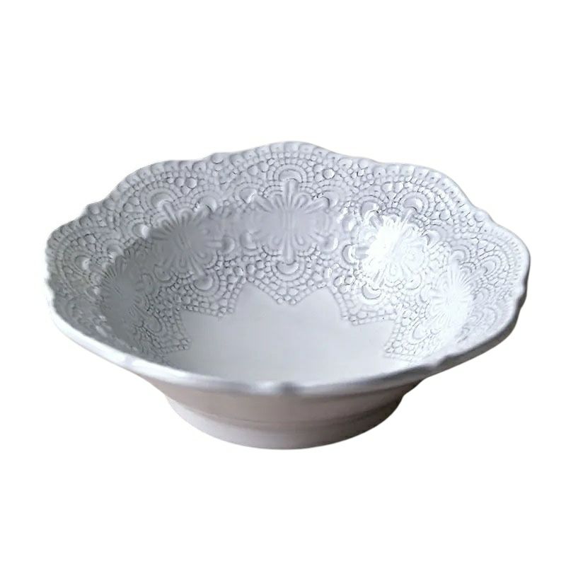 5. ラ セラミカ メルレット ホワイト レース ボウル イタリア製 陶器製 皿 プレート