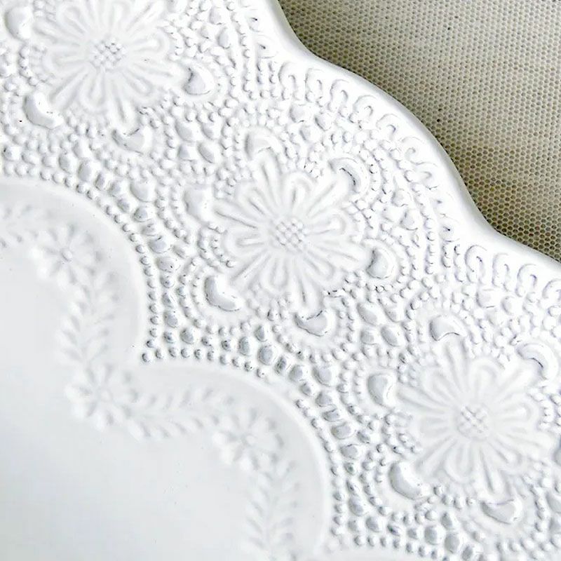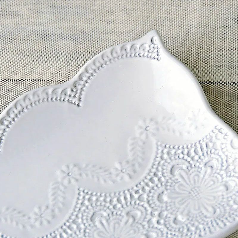 4. ラ セラミカ メルレット ホワイト レース レクタングルプレート プレート皿 イタリア製 陶器製 皿 プレート