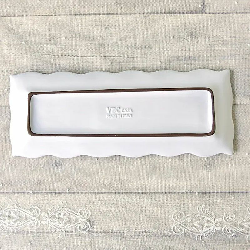 5. ラ セラミカ メルレット ホワイト レース レクタングルプレート プレート皿 イタリア製 陶器製 皿 プレート