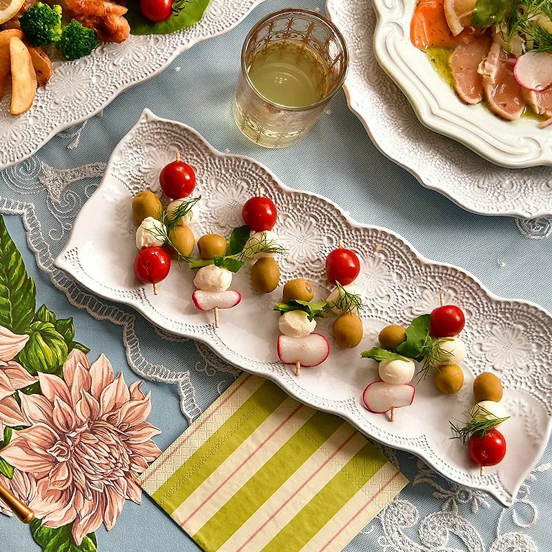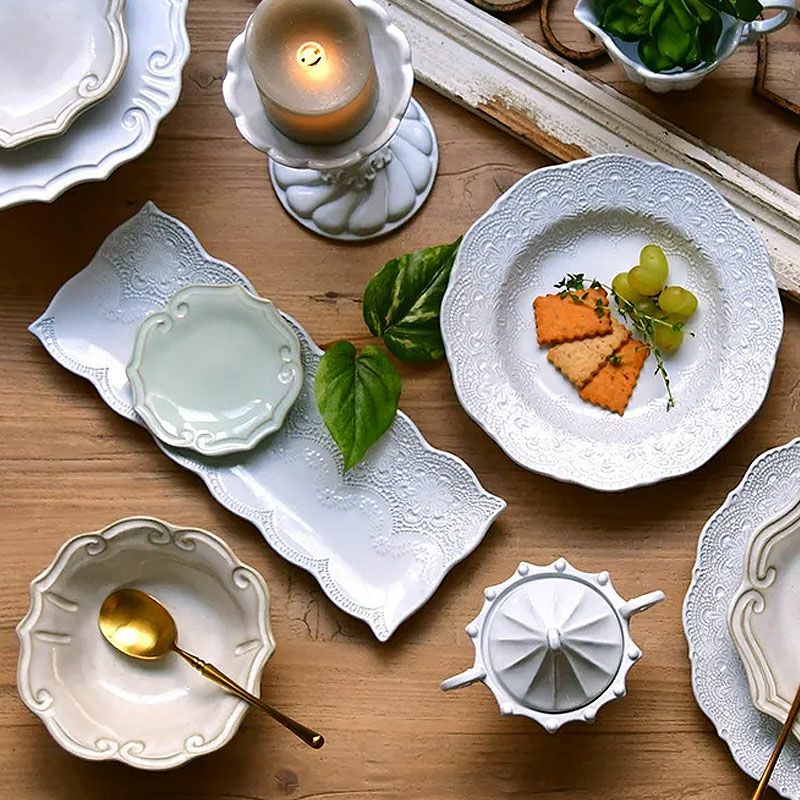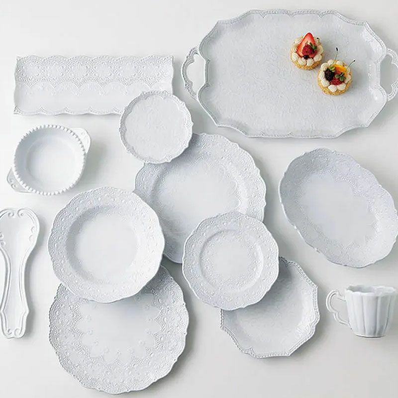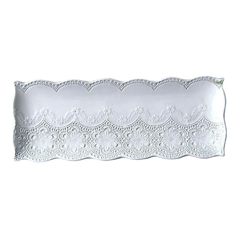 イタリア「ラ・セラミカ」繊細なレース柄と優しいカラーの「レースシリーズ」| ラ セラミカ メルレット ホワイト レース レクタングルプレート プレート皿 イタリア製 陶器製 皿 プレート