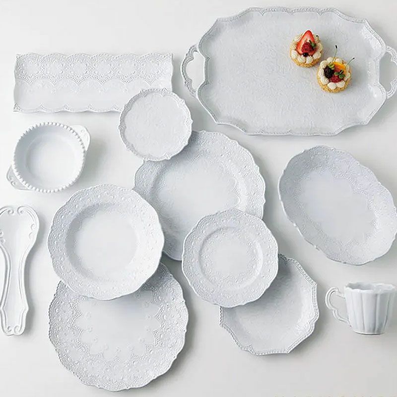 イタリア「ラ・セラミカ」繊細なレース柄と優しいカラーの「レースシリーズ」| ラ セラミカ メルレット ホワイト レース フラットプレート28センチ プレート 皿 イタリア製 陶器製 皿 プレート