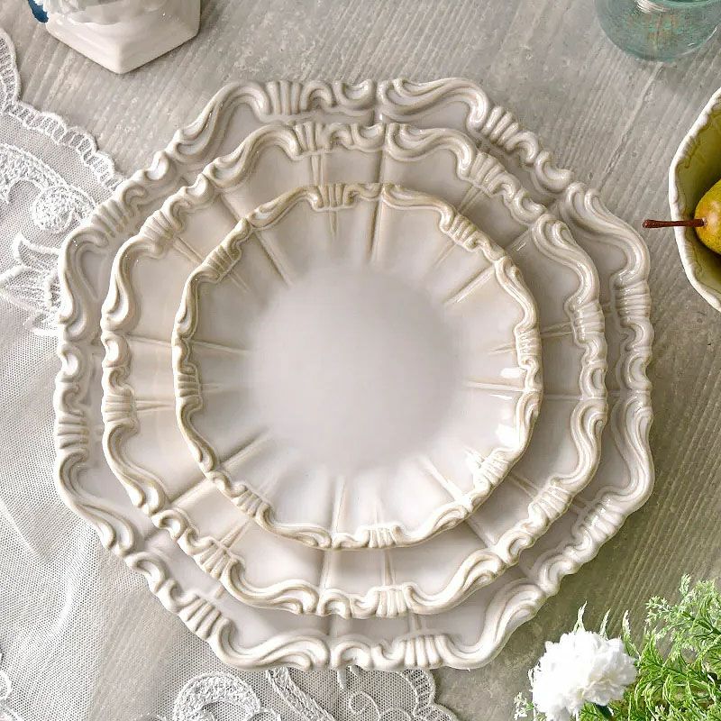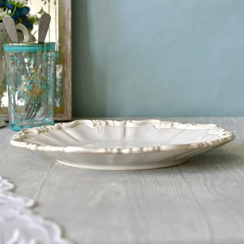 【コメント】シャビーシックな仕上げのお洒落な白い陶器の食器